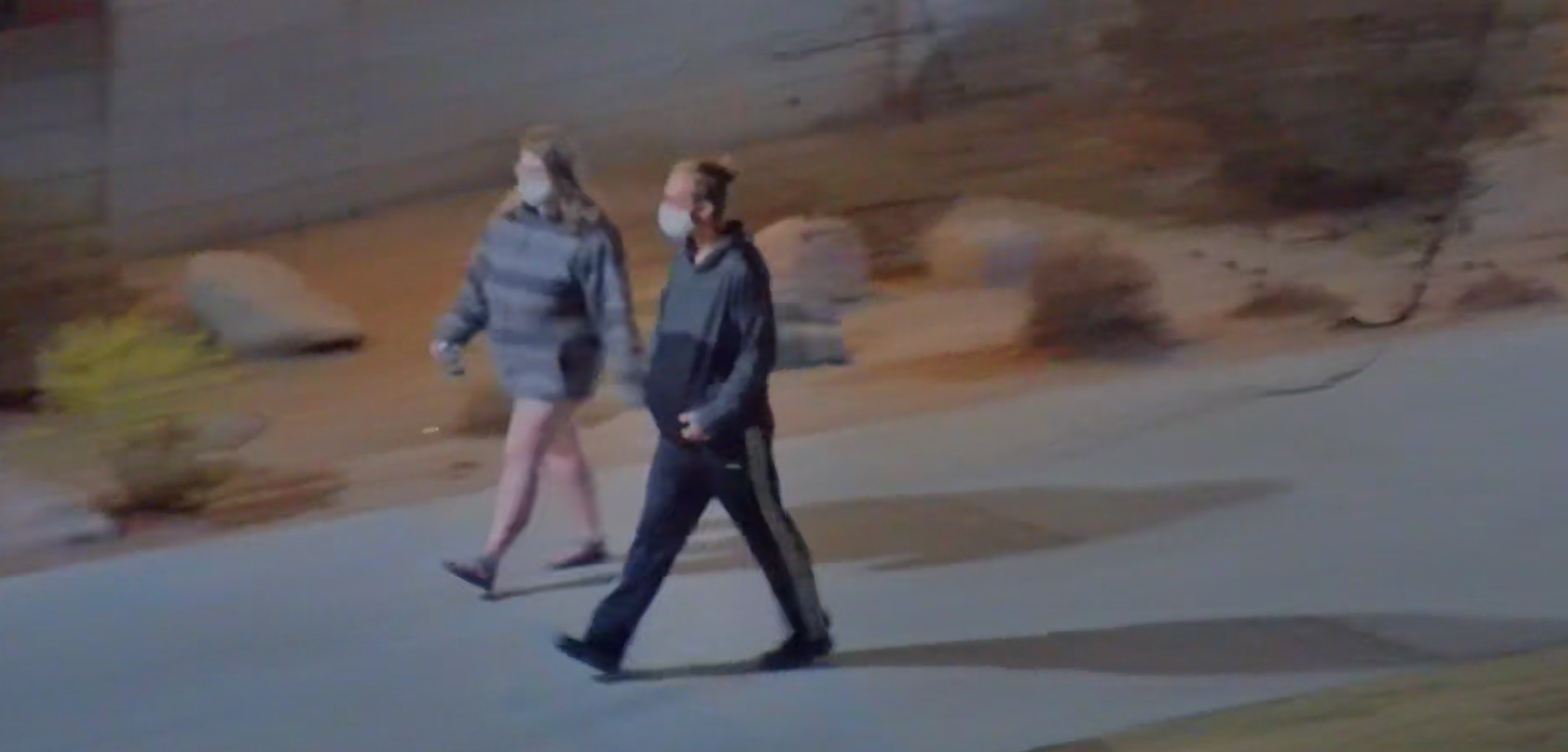 Surveillance video captured images of two masked subjects believed to be involved. These subjects are described as a white male with a bun wearing a two-tone dark sweatshirt and dark sweats in a light-colored mask and a white female wearing a two-toned striped sweatshirt and sandals in a light-colored mask.
